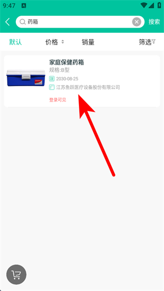 4、找到对应商品如家庭保健药箱,完成商品查找操作。