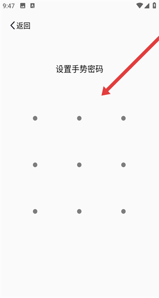 4、在设置手势密码界面,绘制手势密码图案,完成手势密码的设置。