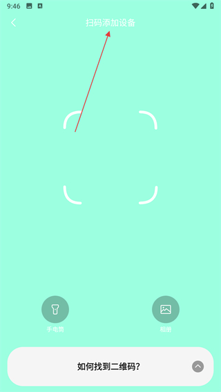 4、将设备机身二维码对准扫码框,完成扫码操作后即可成功添加设备。