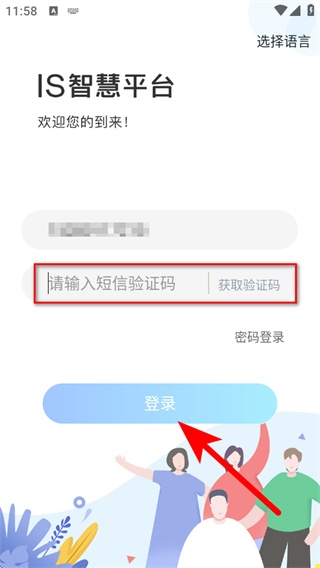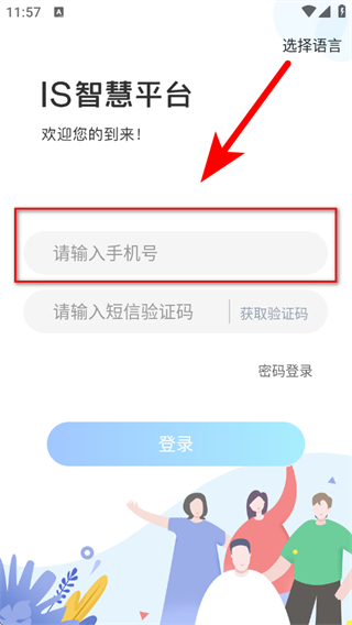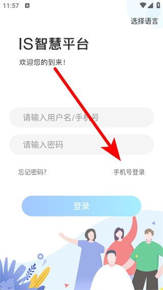 1、打开IS智慧平台,点击手机号登录,切换至手机号登录界面。