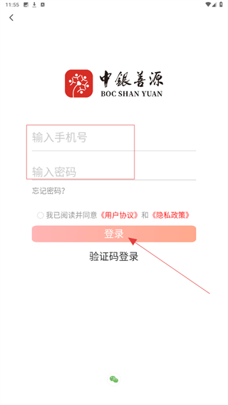 1、点击“温馨提示”弹窗的“同意”,进入中银善源主界面。