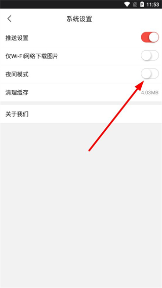 3、在系统设置界面,找到夜间模式选项,点击其右侧的开关按钮,将其开启,即可打开间模式。