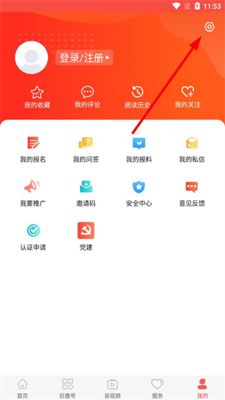 2、在个人中心界面,点击右上角设置图标,进入系统设置界面。
