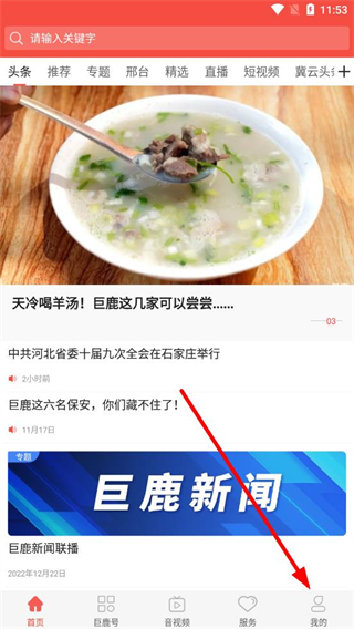 1、在冀云巨鹿首页,点击右下角我的按钮,进入个人中心界面。