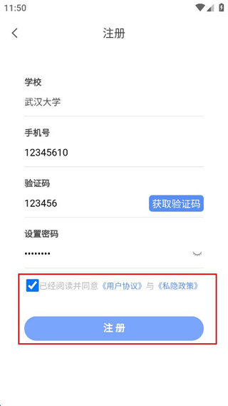 4、勾选已经阅读并同意用户协议与私隐政策,点击“注册”按钮完成注册。