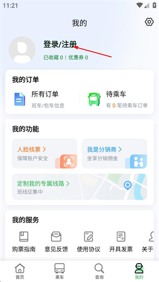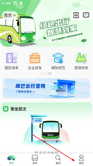 1、打开顺巴出行APP,点击底部我的,进入个人中心页面。