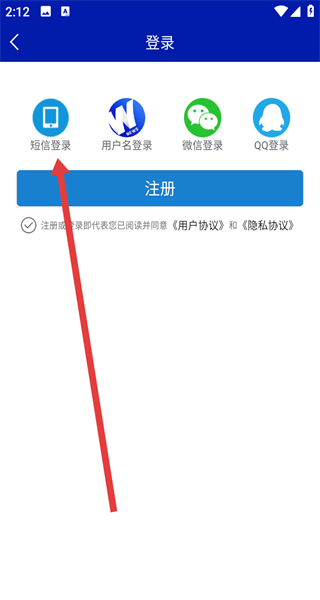 3、在进入到登录页面中,可以点击短信登录按钮,使用短信验证进行登录。