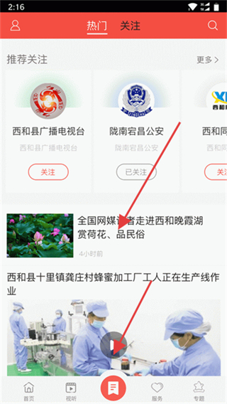 3、热门板块可关注西和县广播电视台、陇南宕昌公安等本地机构或媒体账号,获取其发布的资讯并参与互动。