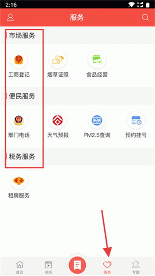 4、服务板块涵盖市场服务、便民服务、税务服务,为用户提供各类政务及生活便民服务。