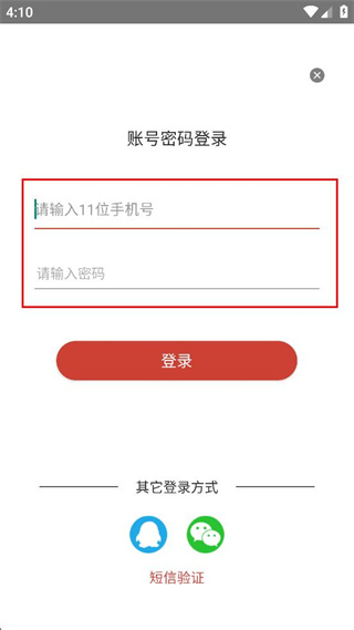 3、在账号密码登录界面输入手机号和密码,准备进行登录操作。