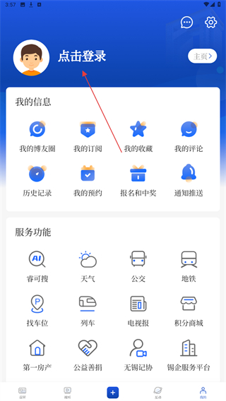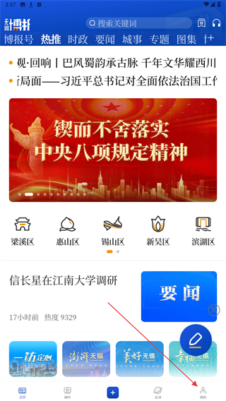 1、智慧无锡app,进入首页点击底部我的按钮。
