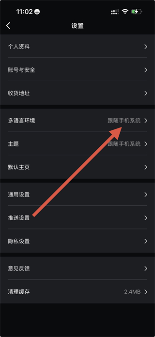 3、在设置界面,点击多语言环境选项,进入多语言环境页面。