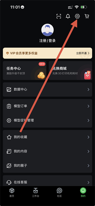 2、在个人页面,点击右上角设置图标,进入设置界面。