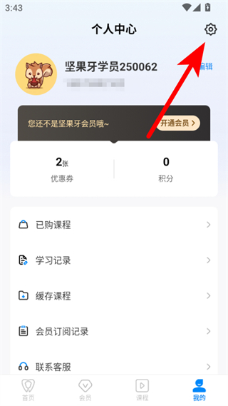 1、打开坚果牙APP,点击右下角的我的选项,进入个人中心页面。