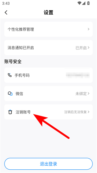 3、在设置界面里,点击注销账号选项,进入注销账号页面。