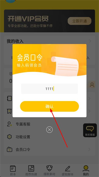 3、在弹窗的输入框中,填写对应的会员口令码。