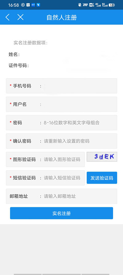 2、选择个人业务,点击用户注册,填写好相关的信息之后点击实名注册。