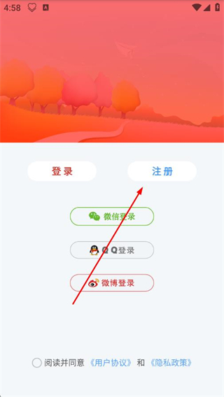 1、打开情侣我和你APP,点击“注册”选项,进入注册界面。
