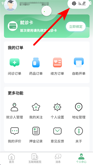 2、在个人中心点击右上角设置,进入设置操作的界面。