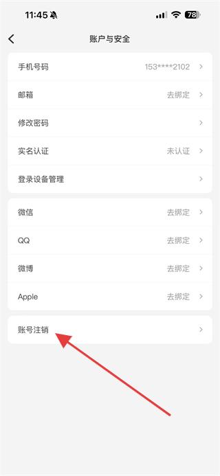 4、在账户与安全页面,点击账号注销选项,即可按照提示完成账号注销操作。