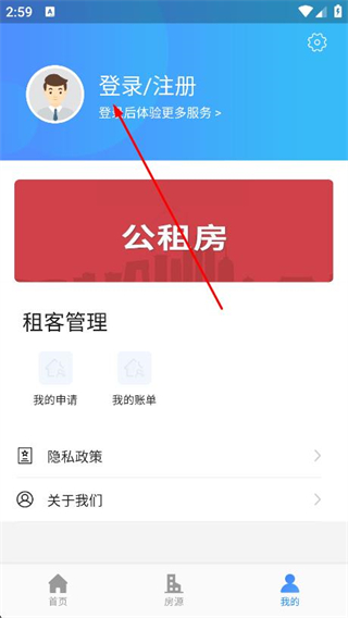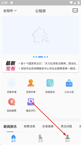 1、打开公租房APP,点击底部导航栏最右侧的我的选项。