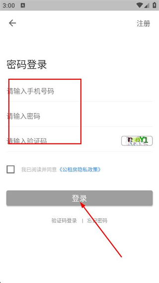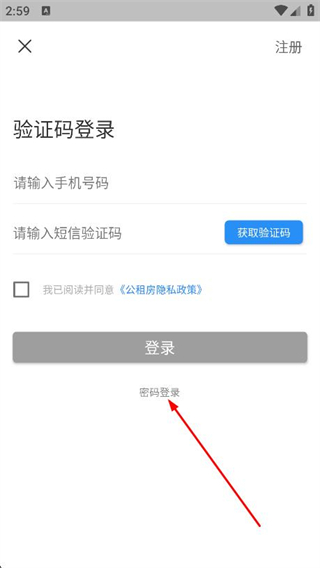 3、在登录界面点击密码登录选项,进入密码登录页面。