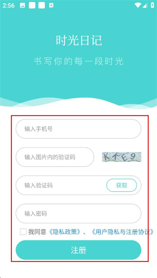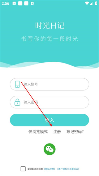 1、打开时光日记APP,点击底部“我的”选项,进入登录注册界面。
