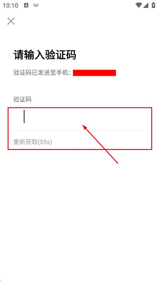 3、在验证码输入界面,输入收到的验证码,完成登录操作。