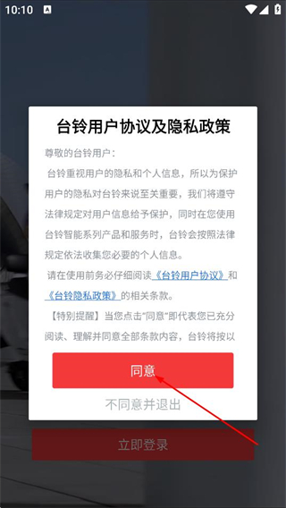 1、在弹窗中点击同意用户协议及隐私政策,进入登录界面。