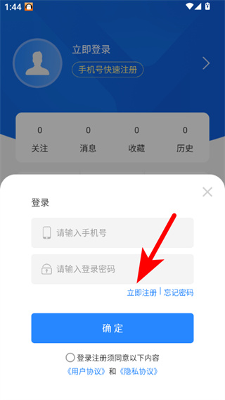 2、选择其他方式登录中的手机号登录,勾选登录注册须同意的《用户协议》和《隐私协议》。