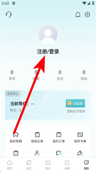 2、在个人页面,点击注册登录,进入登录页面。