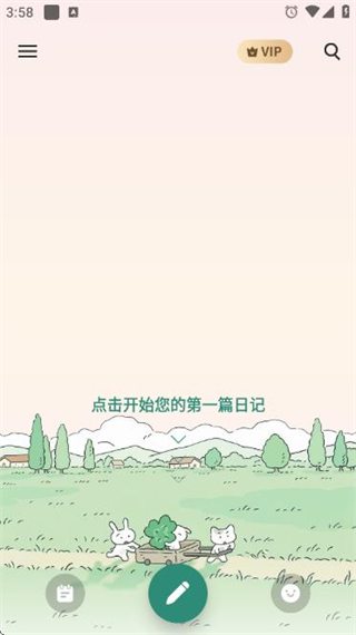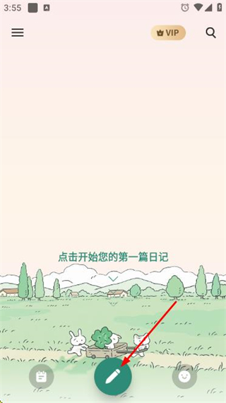 1、在APP首页,点击底部的笔形按钮,进入日记编辑页面。