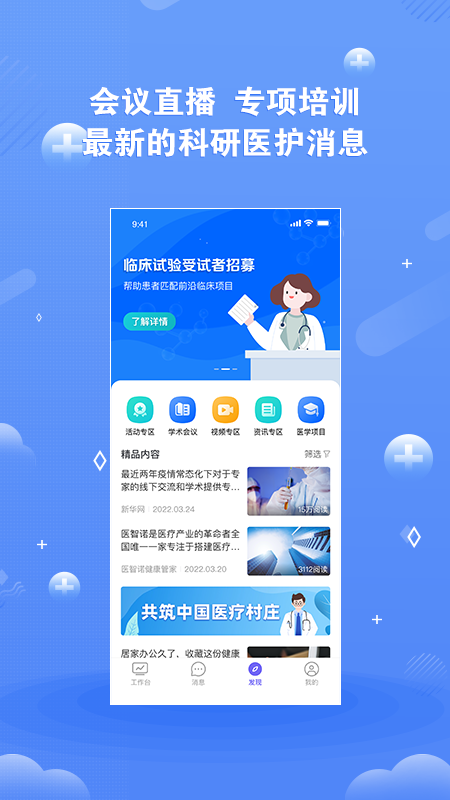 【会议】包括线上报名线下参加的会议和线上的直播会议,方便医生了解更多医疗行业的知识。