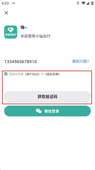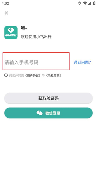 2、在登录页面输入常用手机号码,勾选阅读并同意相关协议。