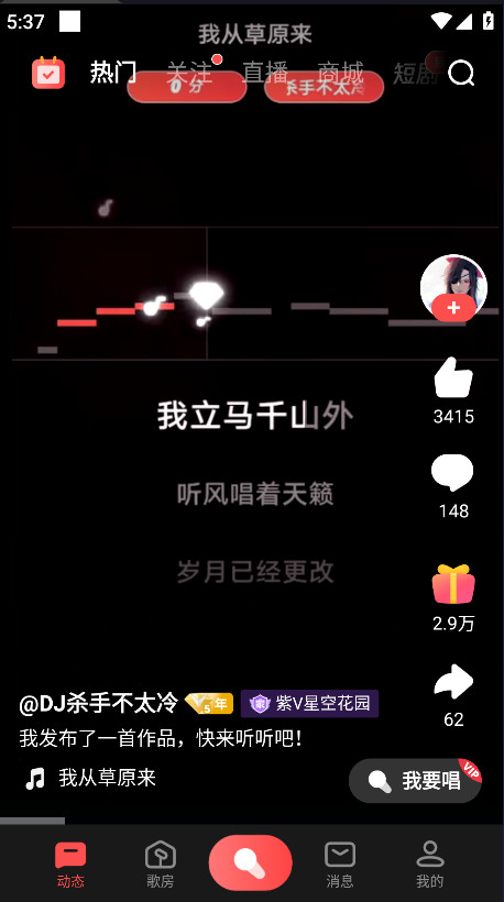 全民k歌是腾讯公司旗下的在线K歌娱乐社交平台。它提供海量正版伴奏曲库,让用户可以随时随地享受高品质的K歌体验。App 具备智能修音、专业混响、歌词同步等功能,帮助用户轻松录制和创作个人歌曲作品。此外,它强大的社交属性允许用户分享作品、与好友合唱、开启歌房互动和观看直播,致力于打造一个全民参与、充满乐趣的移动音乐社交社区。