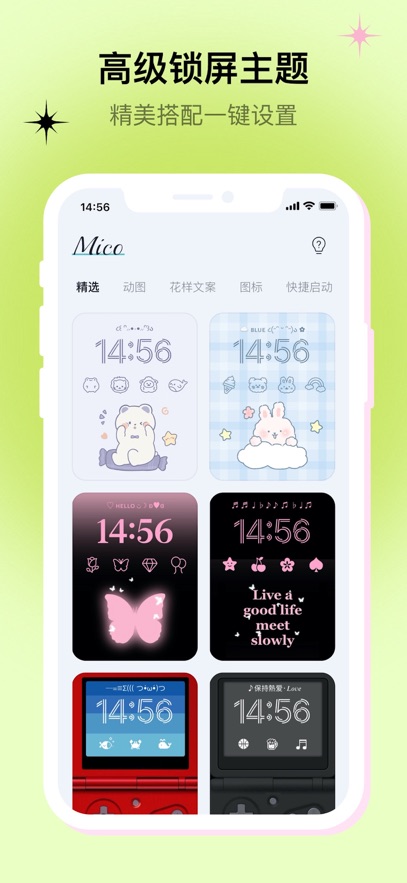 主题化设计:Mico 可让您使用自定义主题和壁纸为您的手机“主题化”。