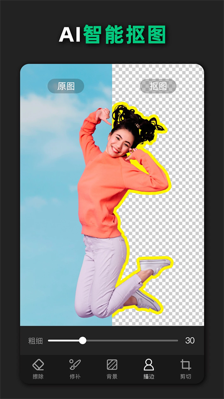「智能抠图」运用AI技术,一键抠图,轻松扣除人像和物品,手机也能抠出完美效果。