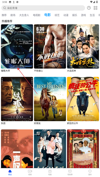 1、打开布丸影视大全APP,进入时点击上方电影的标签。