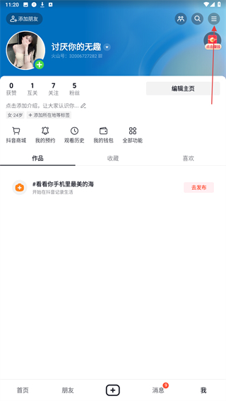 4、在个人主页中就可以看到【获赠火苗】点击就可以查看到获赠的火苗数量。