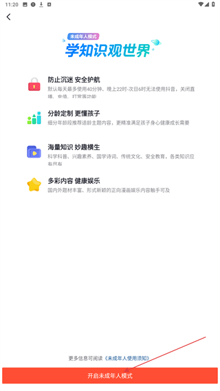 3、在右侧弹出的菜单栏中,点击未成年人模式的按钮。