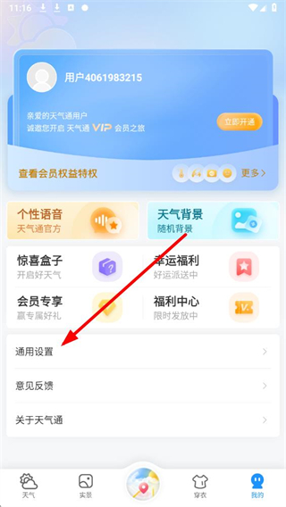 2、在我的页面中,找到并点击通用设置选项,进入设置相关的操作界面。