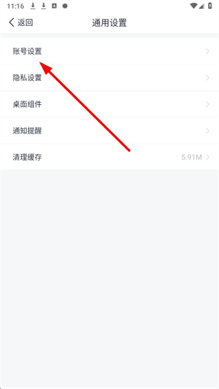 3、在通用设置页面,选择账号设置选项,进入账号信息的管理界面。