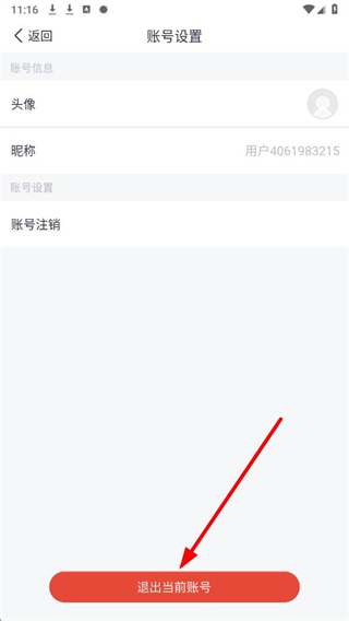 4、在账号设置页面底部,点击退出当前账号按钮,即可完成账号退出登录操作。