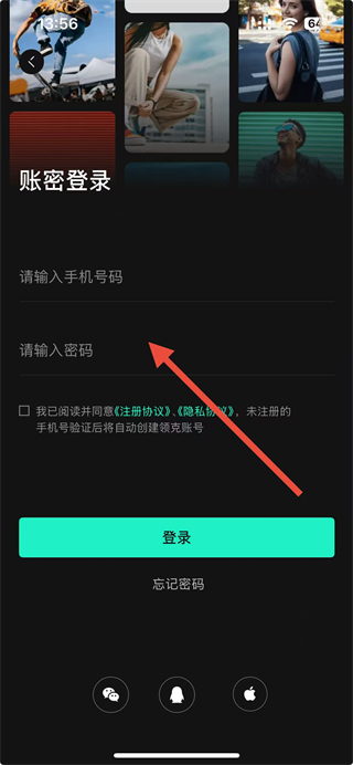 3、在页面的输入栏中,填写账号和密码,勾选协议后点击登录完成操作。