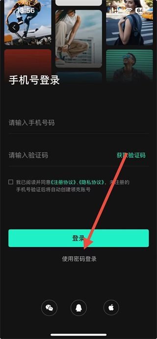 2、在登录页面中,找到使用密码登录选项并点击,切换至账密登录模式。