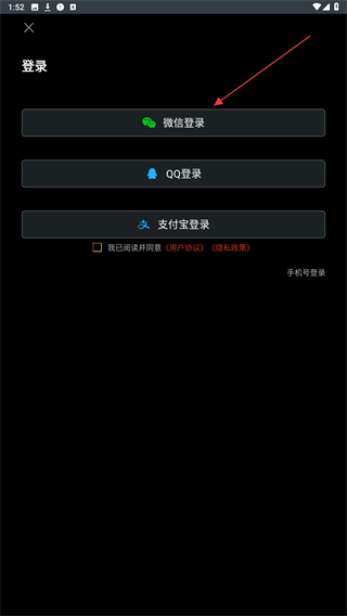 3、在登录的页面内,点击上方微信登录的按钮即可。