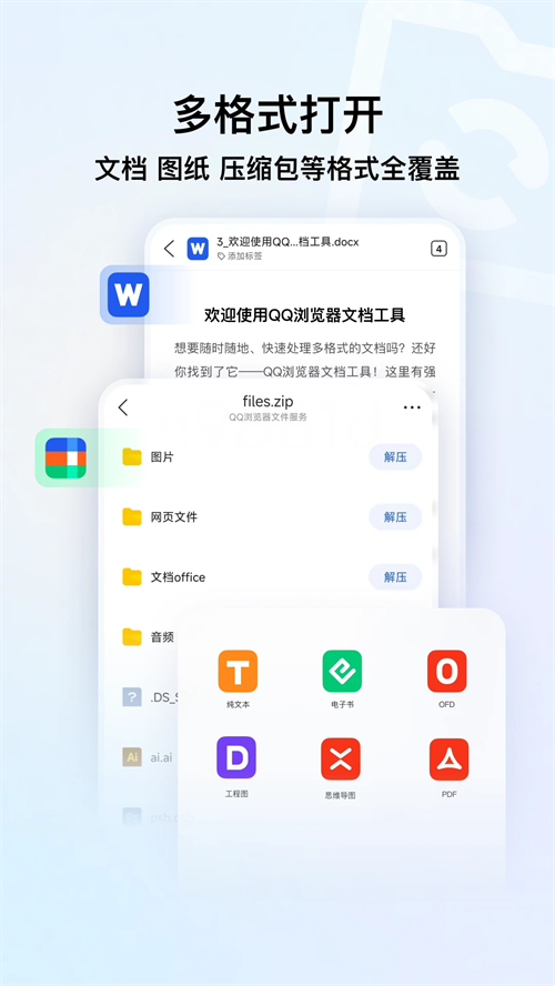 多种文档一键打开,支持Office、PDF等格式一站式编辑转换、增删改查。