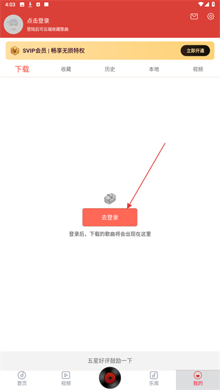 4、在个人中心页面中,点击下载选项,即可查看已下载到手机的音乐。