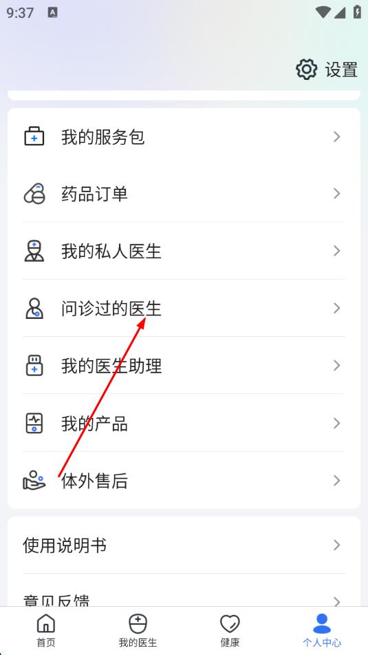 2、在个人中心页面,找到并点击问诊过的医生选项。
