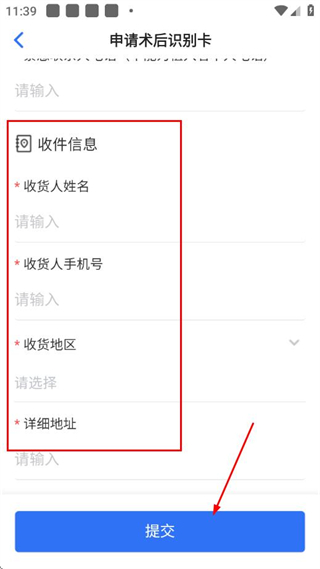 4、确认信息填写完整后,点击提交,完成术后识别卡的申请。